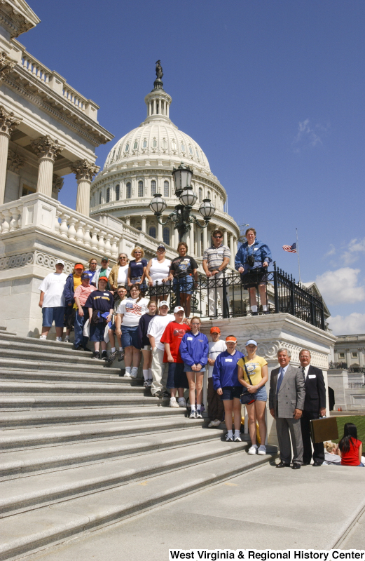 - Photograph of Congressman Rahall standing with some children and other adults on the steps of the Capitol Building