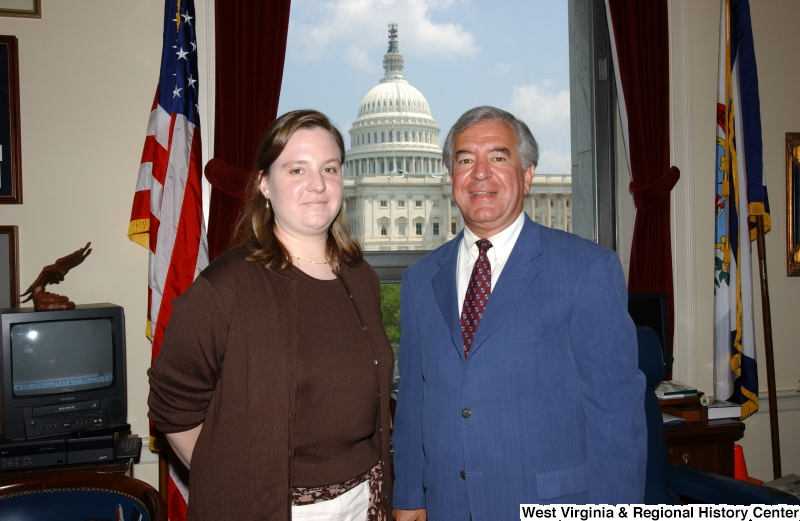- Photograph of Congressman Rahall standing with an unidentified woman in his Washington office