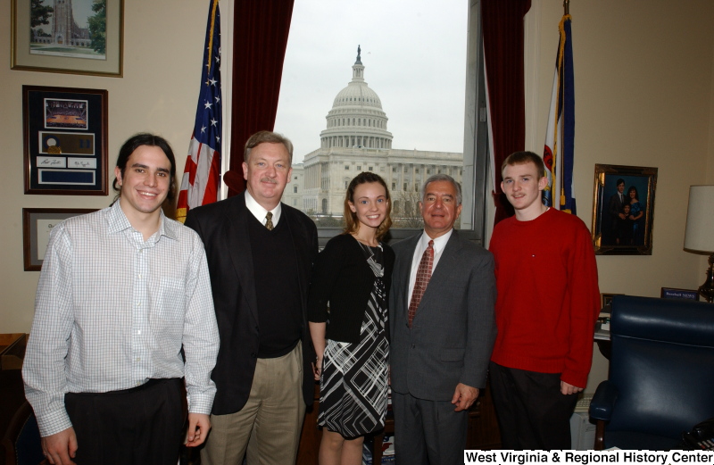 - Congressman Rahall stands in his Washington office with three men and one woman.