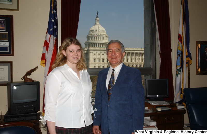 - Congressman Rahall stands in his Washington office with a woman wearing a white blouse.
