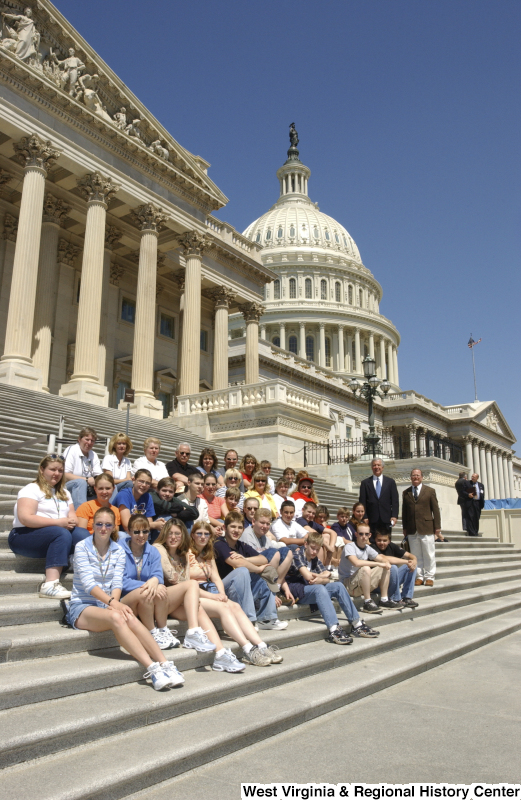 - Photograph of Congressman Rahall standing near a group of children and adults on the steps of the Capitol Building