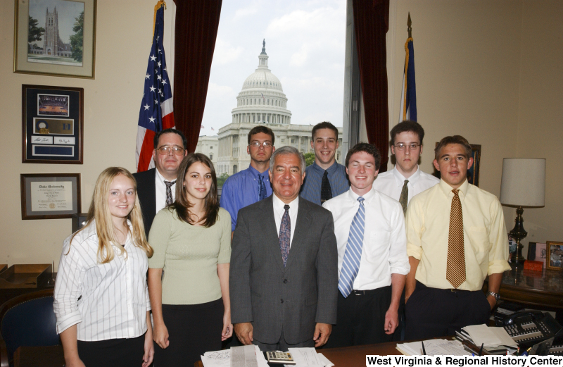 - Congressman Rahall stands in his Washington office with eight people.