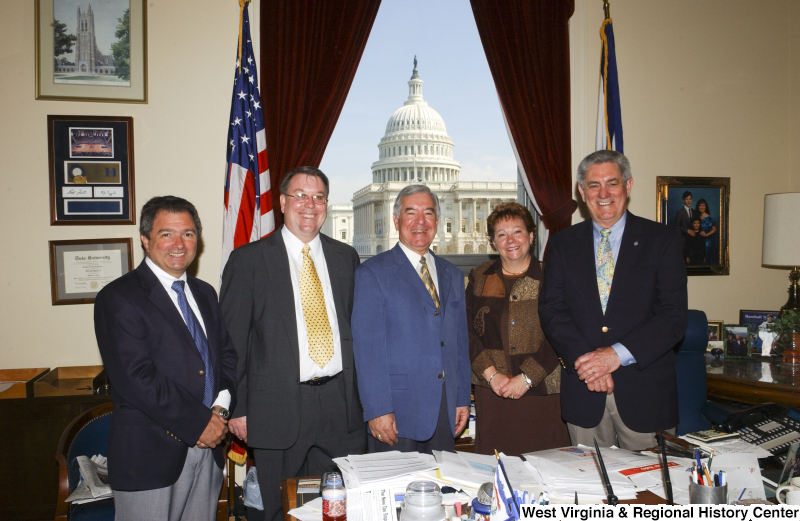 - Congressman Rahall stands in his Washington office with three men and one woman.