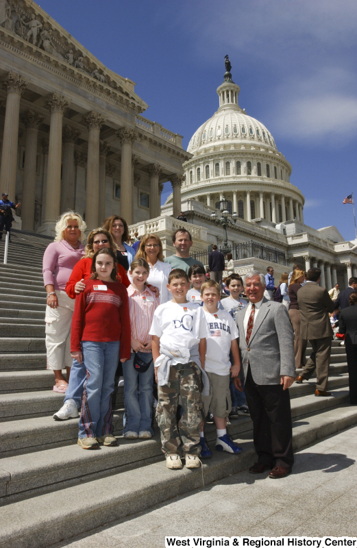 Photograph of Congressman Rahall standing on the steps of the Capitol Building with children and adults