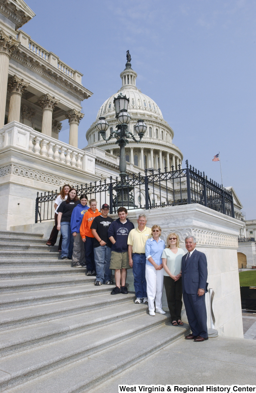 - Congressman Rahall stands on the steps of the Capitol Building with nine children and adults.