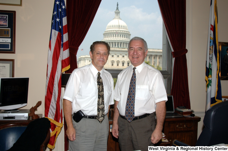 - Congressman Rahall stands in his Washington office with another man wearing white short-sleeve shirts.