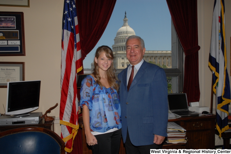 - Congressman Rahall stands in his Washington office with a woman wearing a blue and red blouse.
