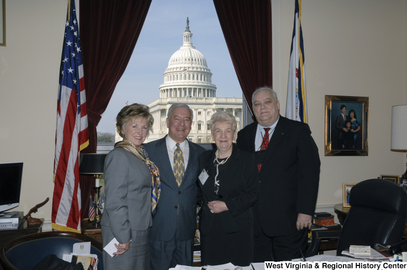 Photograph of Congressman Rahall standing in his Washington office with a man and two women
