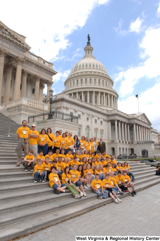 - Photograph of Congressman Rahall on the steps of the Capitol Building with children and adults wearing orange shirts