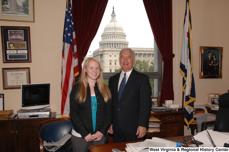 - Congressman Rahall stands in his Washington office with a young woman.