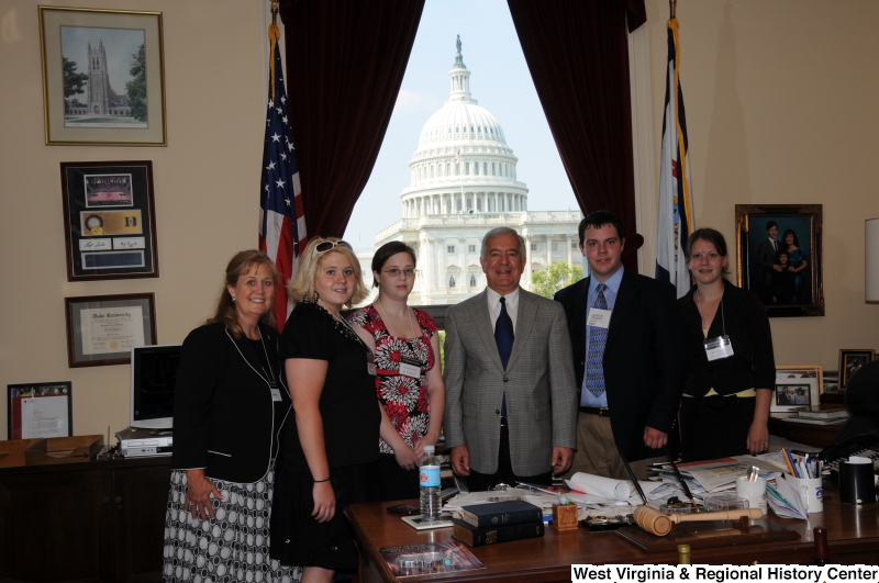 - Congressman Rahall stands in his Washington office with people wearing American Association of Christian Schools badges.