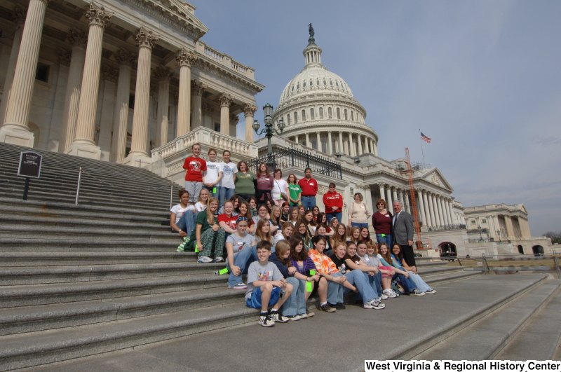 - Photograph of Congressman Rahall on the Capitol Building steps with children and adults
