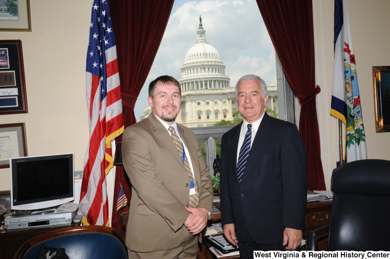 - Congressman Rahall stands in his Washington office with a man wearing a light brown suit.