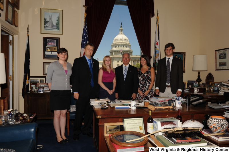 - Congressman Rahall stands in his Washington office with two men and three women.