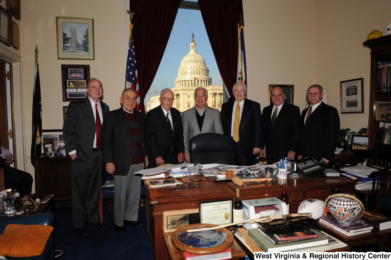 - Congressman Rahall stands in his Washington office with six men.