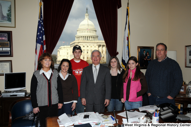 - Congressman Rahall stands in his Washington office with adults and teenagers.