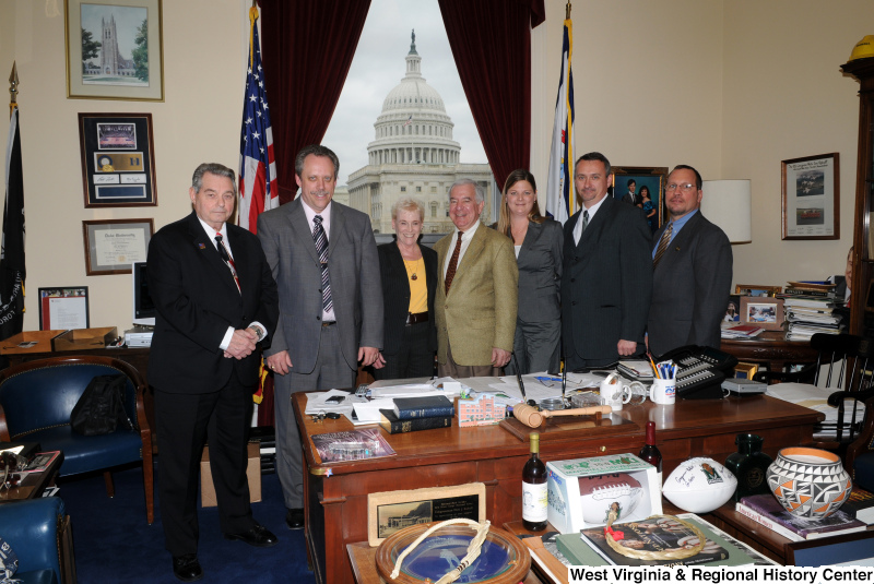 - Congressman Rahall stands in his Washington office with four men and two women.