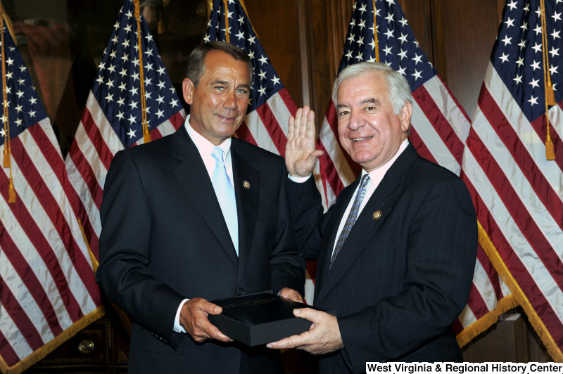 - Photograph of Congressman Rahall at a ceremonial swearing-in with John Boehner