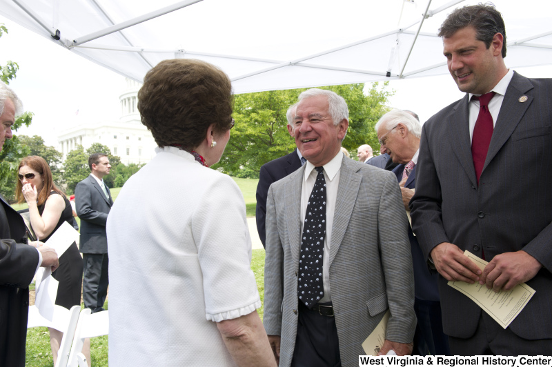 - Congressman Rahall stands with others under a pavilion for a tree planting ceremony.