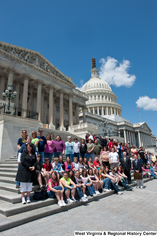 - Photograph of Congressman Rahall on the steps of the Capitol Building with adolescents and adults