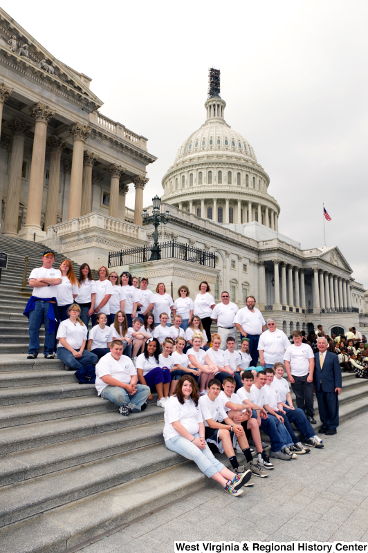 - Photograph of Congressman Rahall on the steps of the Capitol Building with adolescents and adults wearing white shirts