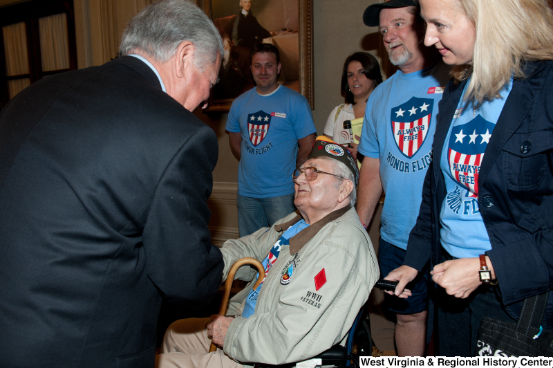 - Congressman Rahall meets a World War II veteran at a military award ceremony.