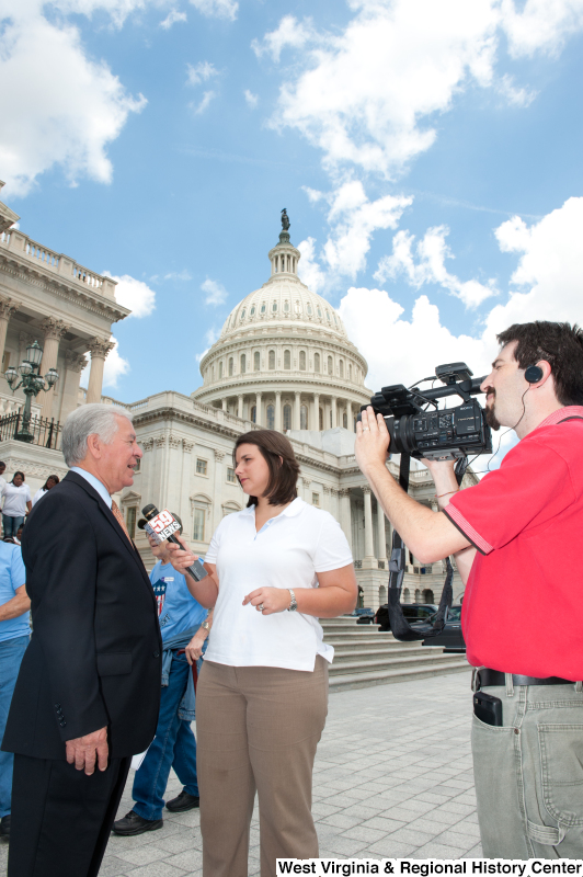 - Photograph of Congressman Rahall giving a television interview outside of the Capitol Building at a military award ceremony