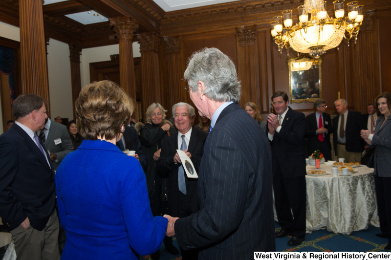 - Photograph of Congressman Rahall, Nancy Pelosi, and others at a tree-planting reception