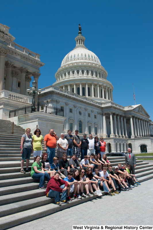 - Photograph of Congressman Rahall standing next to a group of children and adults on the steps of the Capitol Building