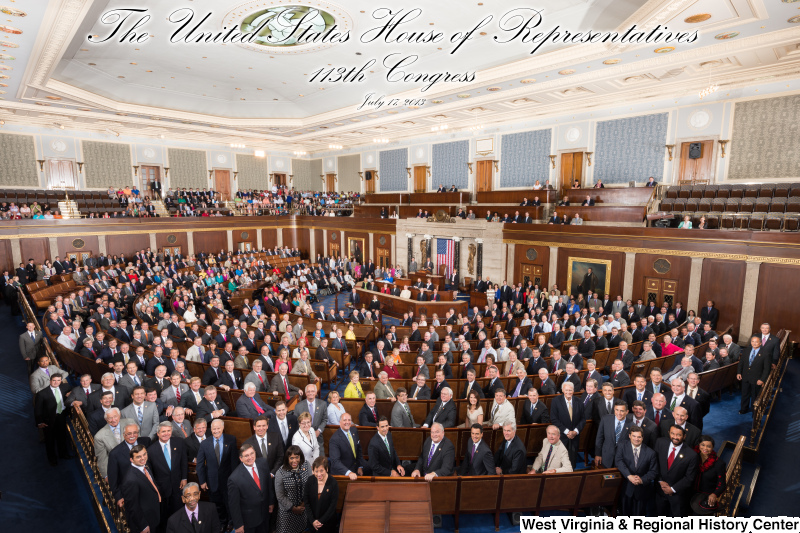 - Photograph of members of the 113th Congress on the floor of the House of Representatives (official portrait photograph with title)