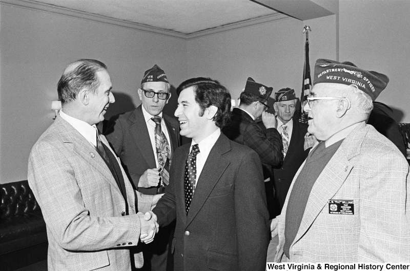 - Congressman Rahall meets with E.W. "Pat" Williams and other men who wear Veterans of Foreign Wars caps and insignias.