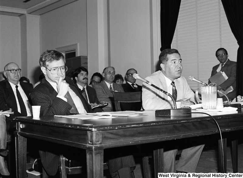 - Photograph of Congressman Nick Rahall and others at a committee hearing