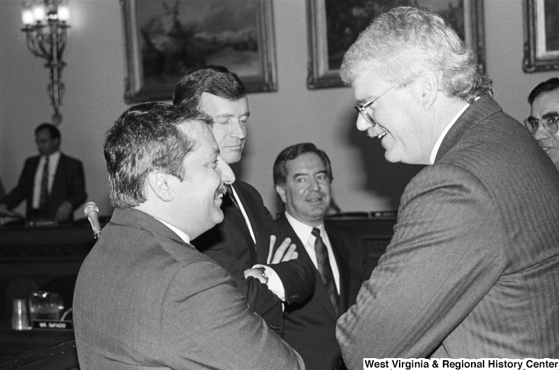 - Photograph of Congressmen Nick Rahall, George Miller, Sam Gejdenson, and Peter Kostmayer at an event