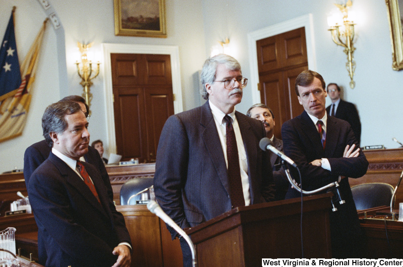- Photograph of Congressmen Peter Kostmayer, Nick Rahall, and George Miller at a hearing