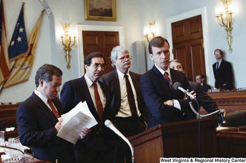 - Photograph of Congressmen Nick Rahall, George Miller, Peter Kostmayer, and Bruce Vento at an unidentified hearing