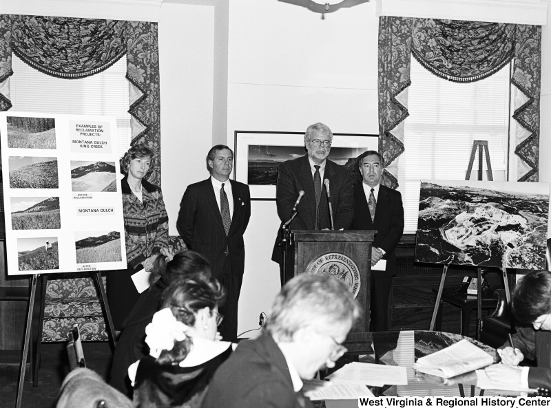- Photograph of Congressmen Nick Rahall and George Miller speaking at an unidentified press conference