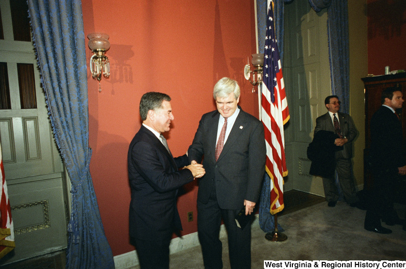 - Photograph of Congressman Nick Rahall and Newt Gingrich at the 104th Congress Speaker of the House Ceremonial Swearing-in