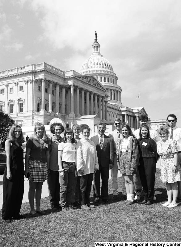 Photograph of Congressman Nick J. Rahall with an unidentified group of young visitors