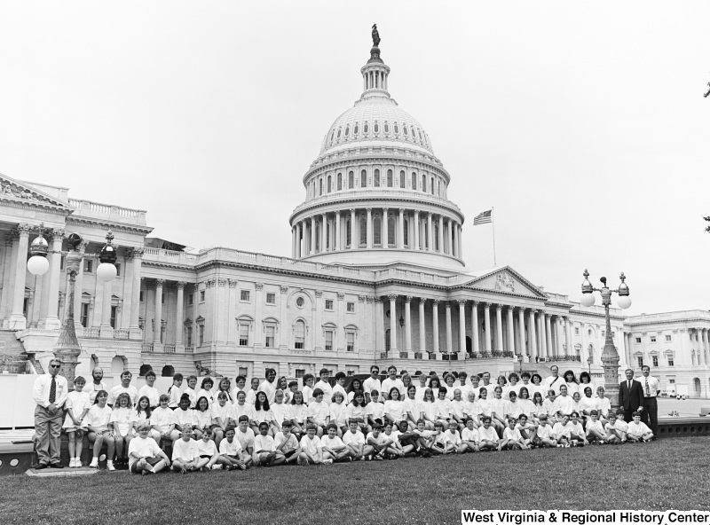 - Photograph of Congressman Nick J. Rahall with a group of unidentified students