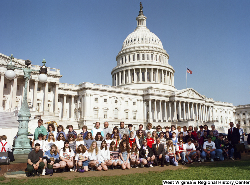 - Photograph of Congressman Nick Rahall with a group of unidentified students at the Capitol Building