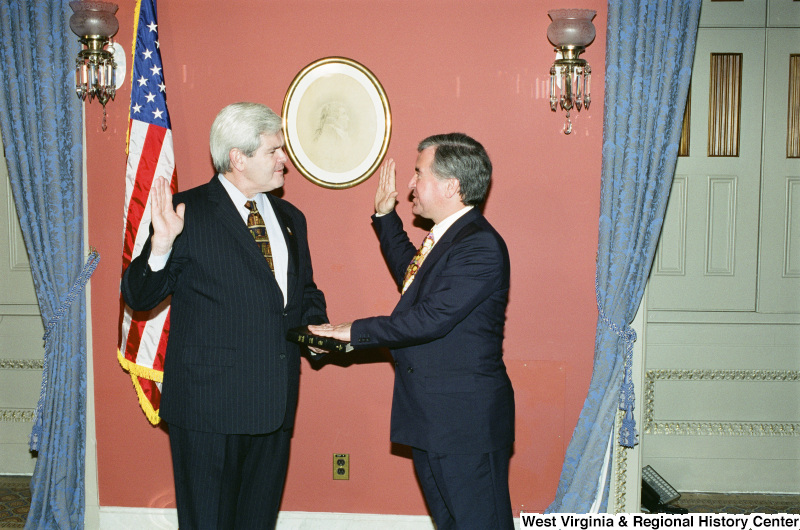 - Photograph of Speaker of the House Newt Gingrich and Congressman Nick Rahall at a swearing-in ceremony