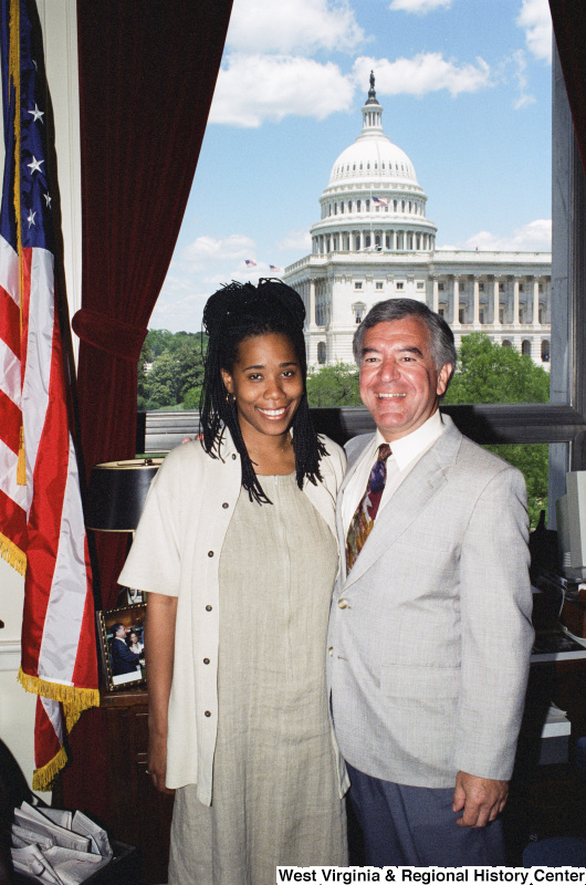 - Photograph of Congressman Nick Joe Rahall posing in his office with an unidentified visitor