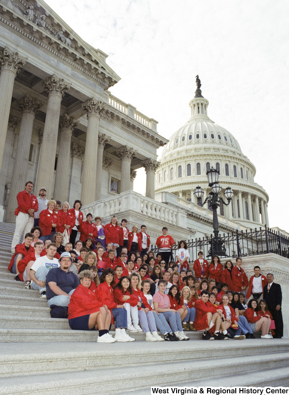 - Photograph of Congressman Nick Joe Rahall with an unidentified school group posing on the steps of the Capitol