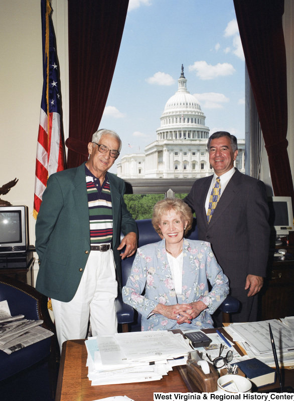 Photograph of Congressman Nick Rahall with two unidentified visitors to his office
