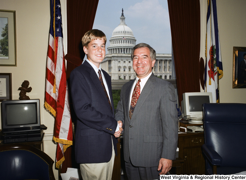 - Photograph of an unidentified young man posing with Congressman Nick Rahall