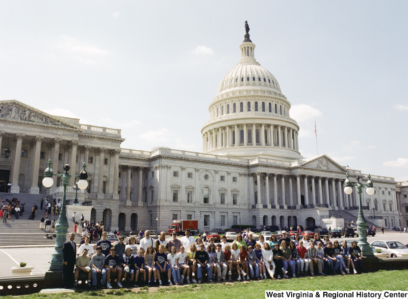 - Photograph of Congressman Nick J. Rahall with a group of students from an unidentified school
