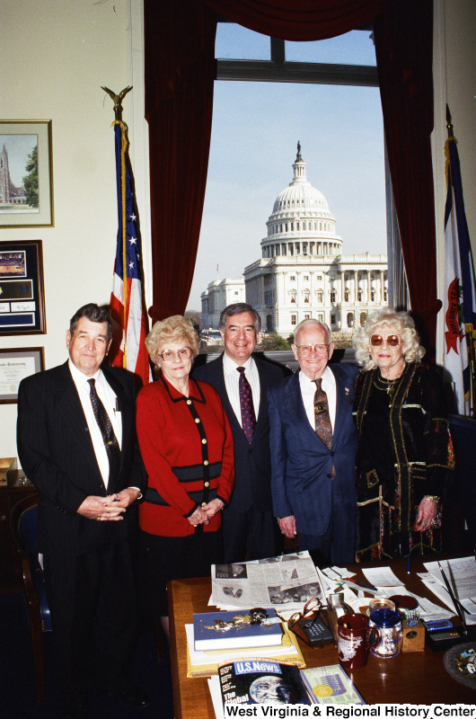 Photograph of Congressman Nick J. Rahall posing in his office with a group of unknown people