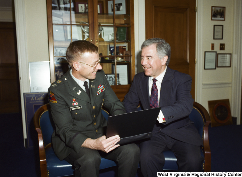 Photograph of Congressman Nick J. Rahall with a military officer named Robertson