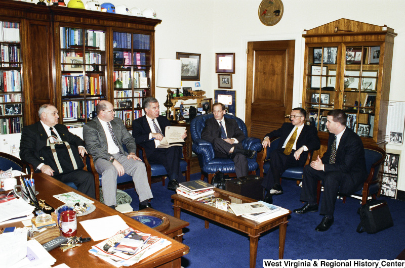 Photograph of Congressman Nick J. Rahall in an unidentified meeting with five other people