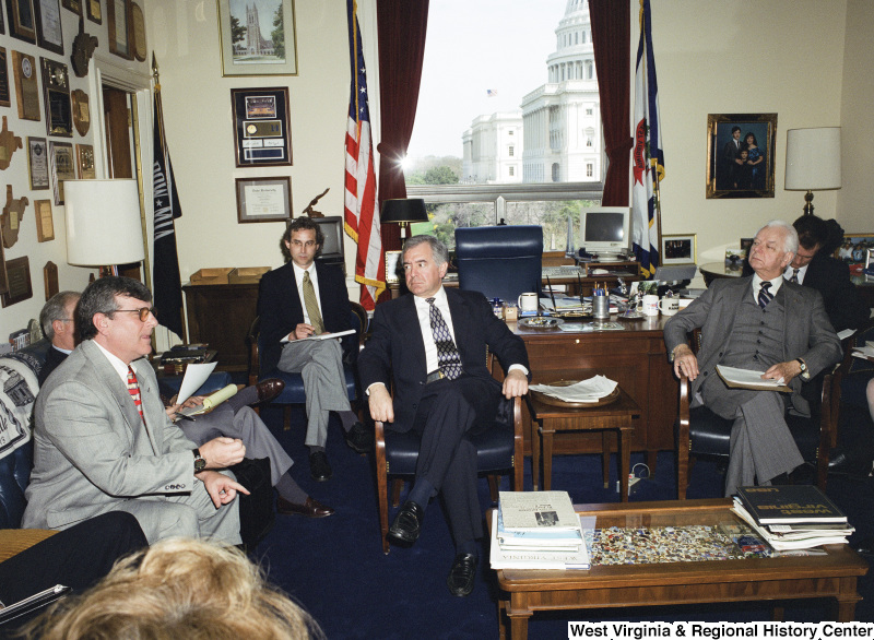 - Photograph of Congressman Nick J. Rahall and Senator Robert C. Byrd in a meeting with others